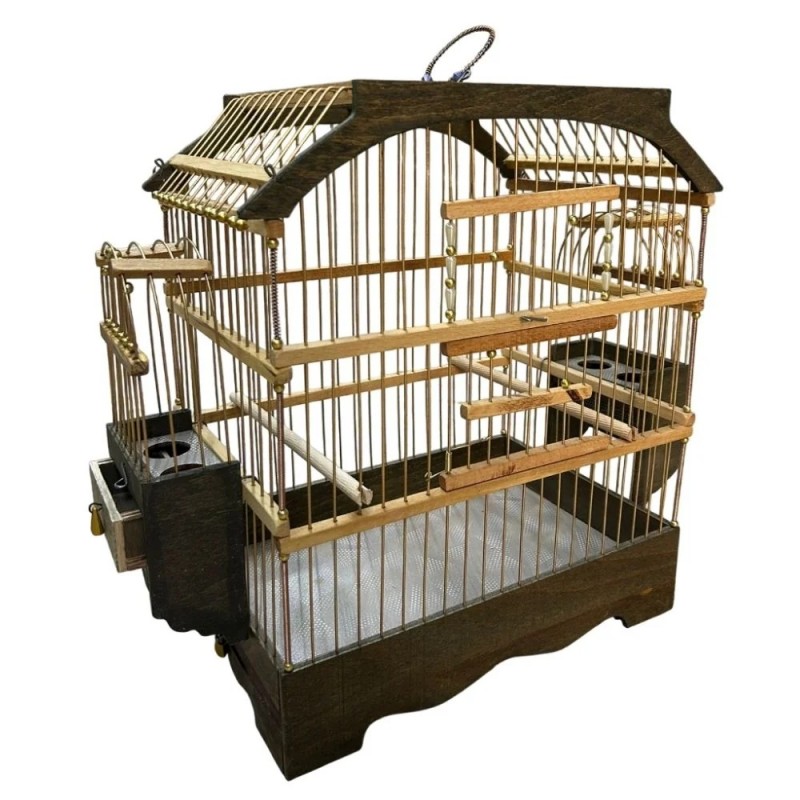 Ahşap yapısı, doğal bir görünüm sunarken, aynı zamanda dayanıklılığı ile de dikkat çekmektedir. Uzun ömürlü kullanım için tasarlanmış olan bu kafes, kuşların sağlığına zarar vermeyen malzemelerle üretilmiştir.