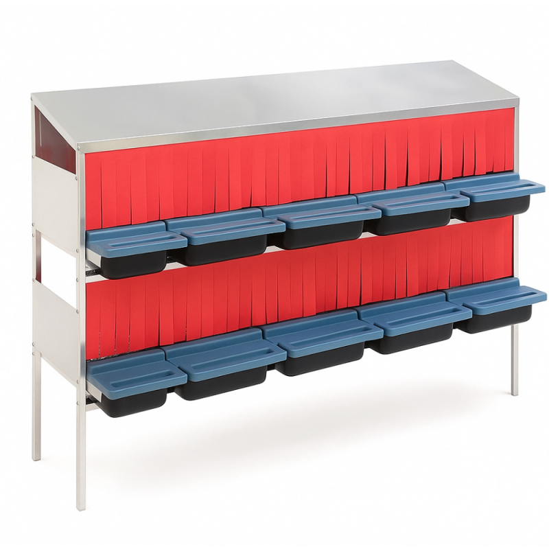 İki katmanlı yapısı, tavukların rahatça yerleşebilmesi için geniş bir alan sunar. Her bir göz, tavukların doğal davranışlarını sergileyebileceği şekilde tasarlanmıştır. Bu, hem hayvanların sağlığını hem de üretkenliğini artırır. Ayrıca, 10 gözlü dizayn, birden fazla tavuk için yeterli alan sağlayarak, kalabalık ortamlarda bile düzeni korur.